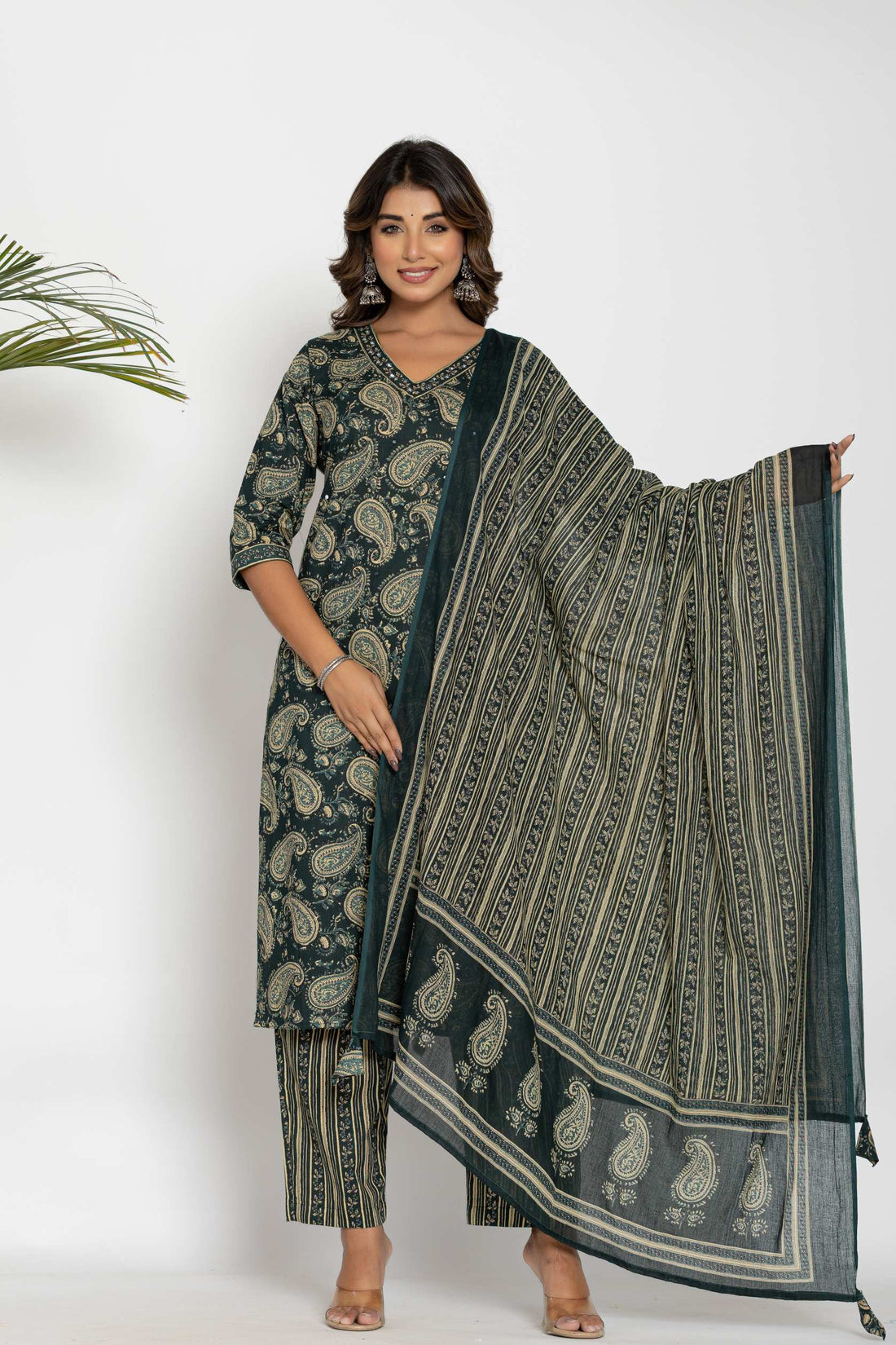 Traditional Paisley Print Kurta Set with Matching Dupatta