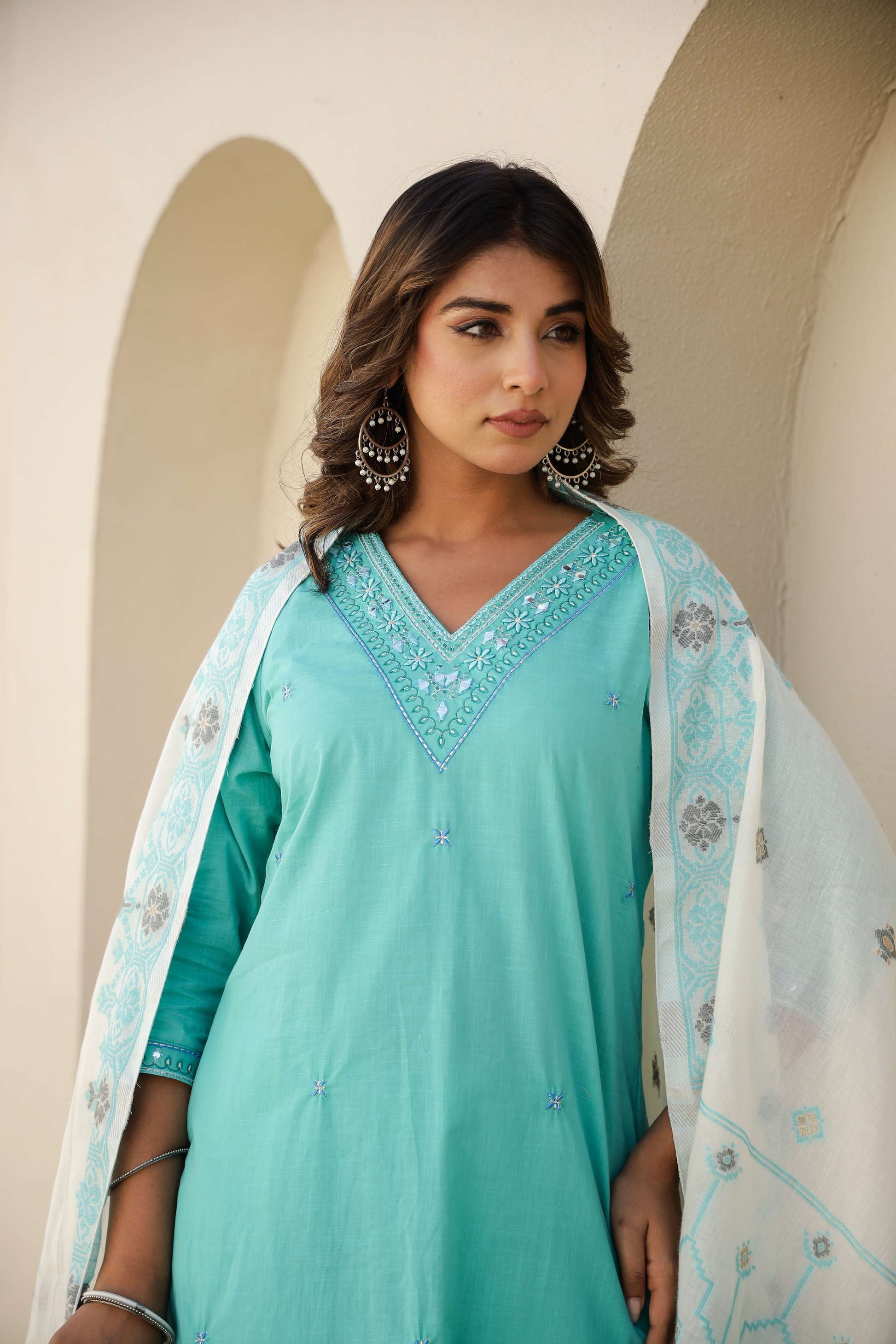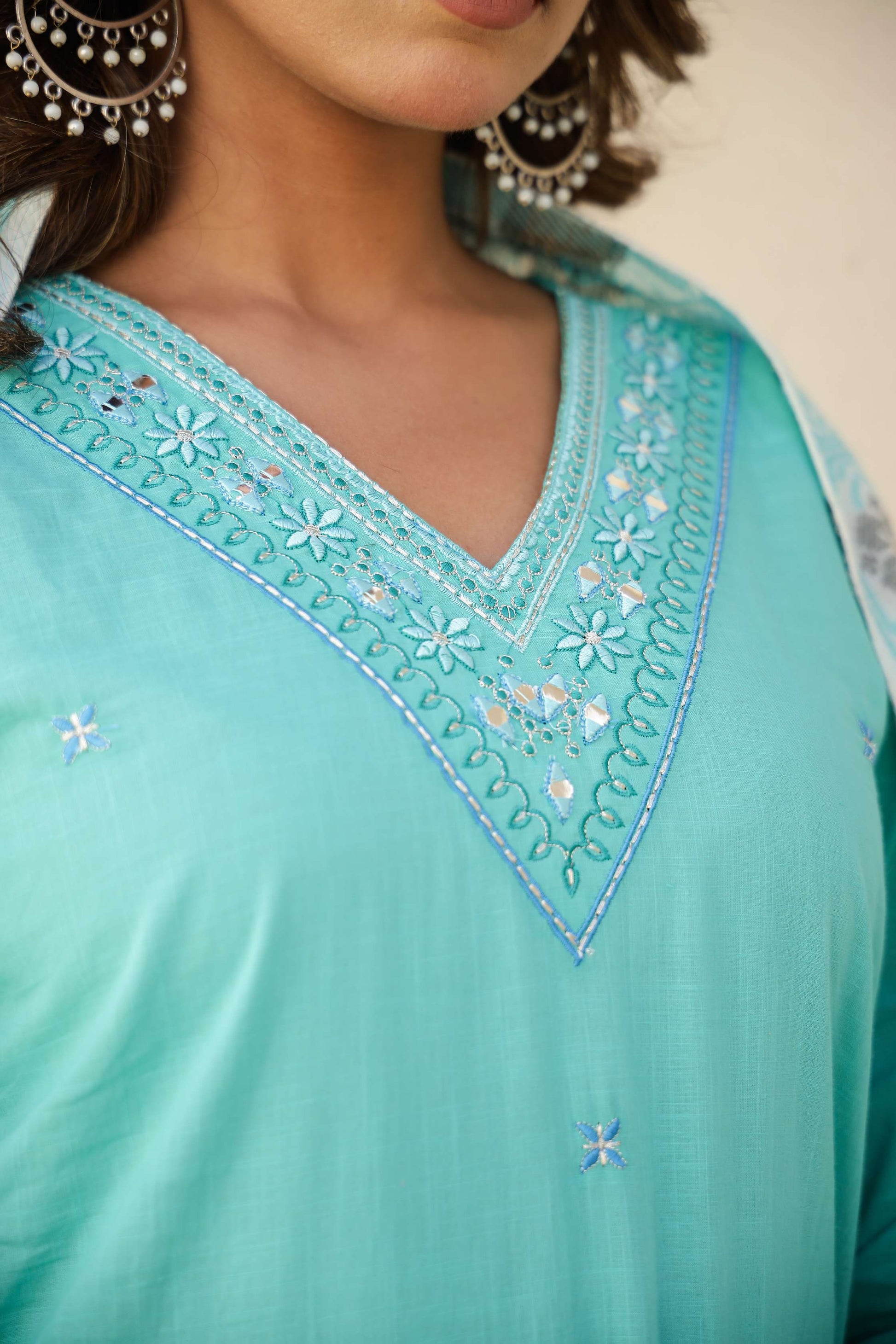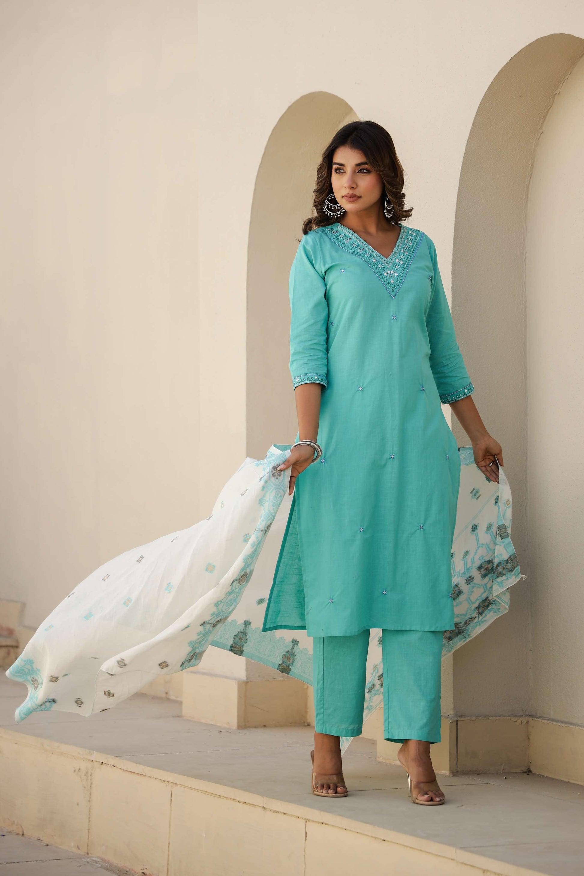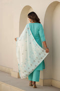 Sky Blue Solid Cotton Kurta Set with Embroidered Pocket