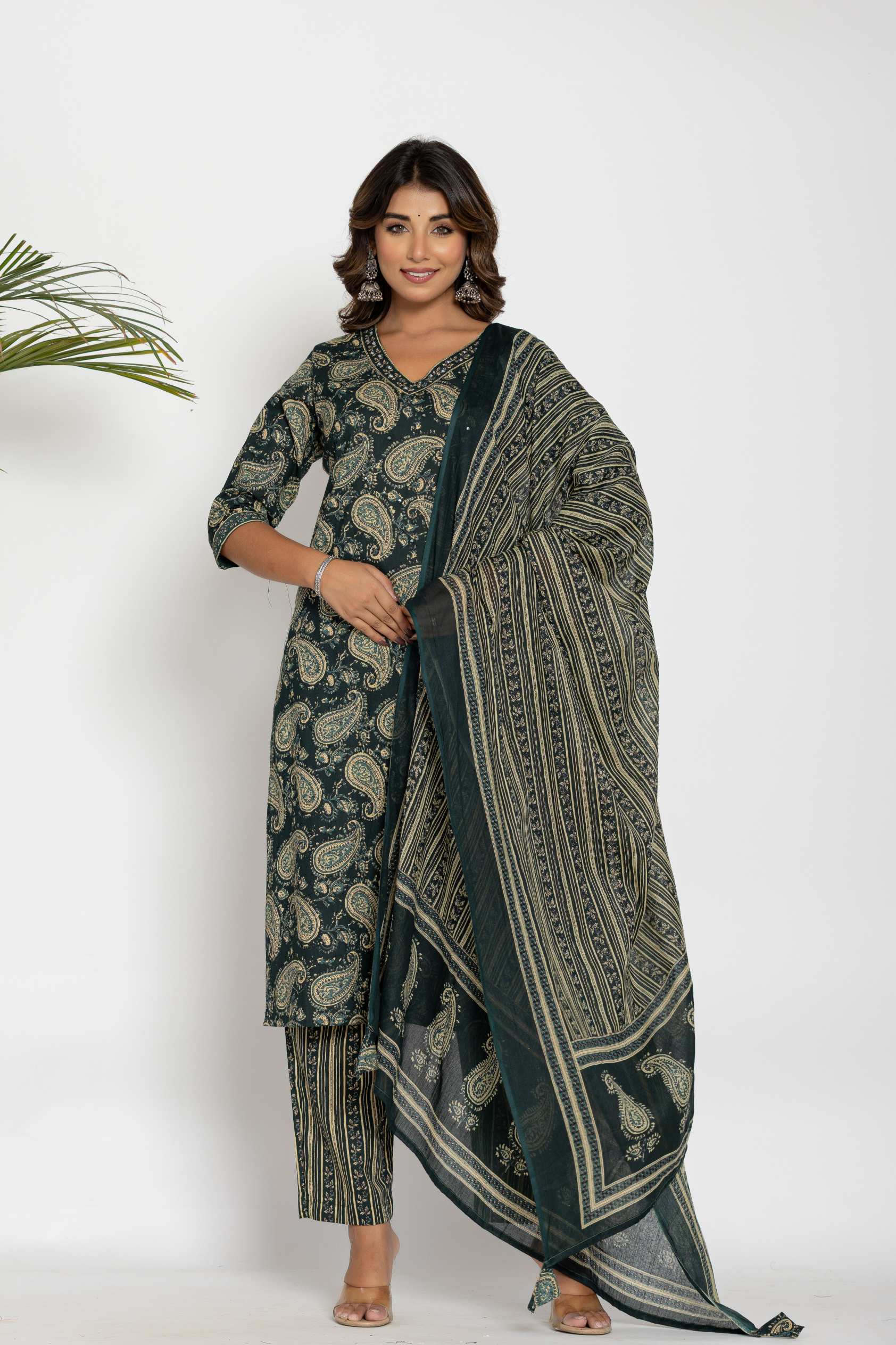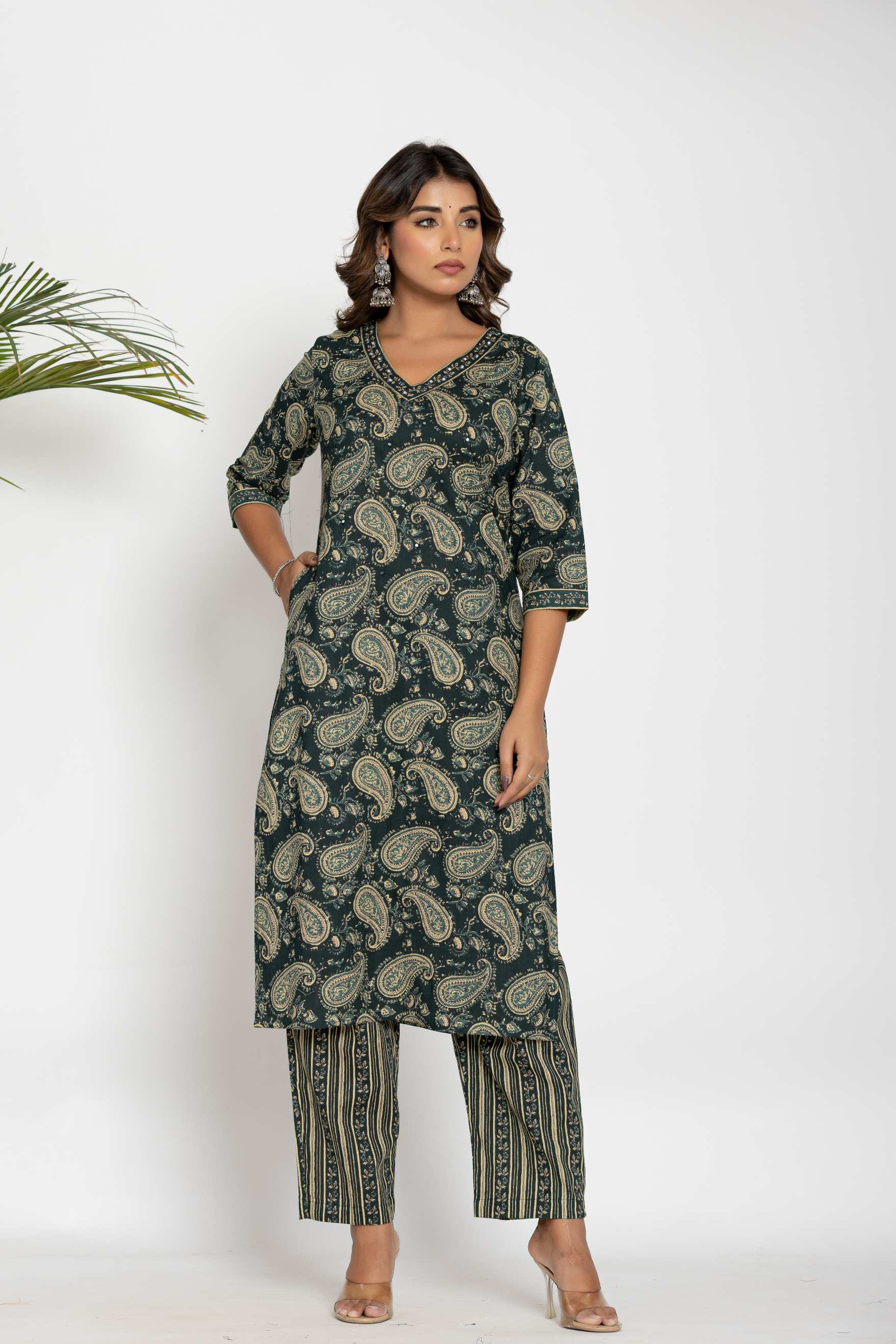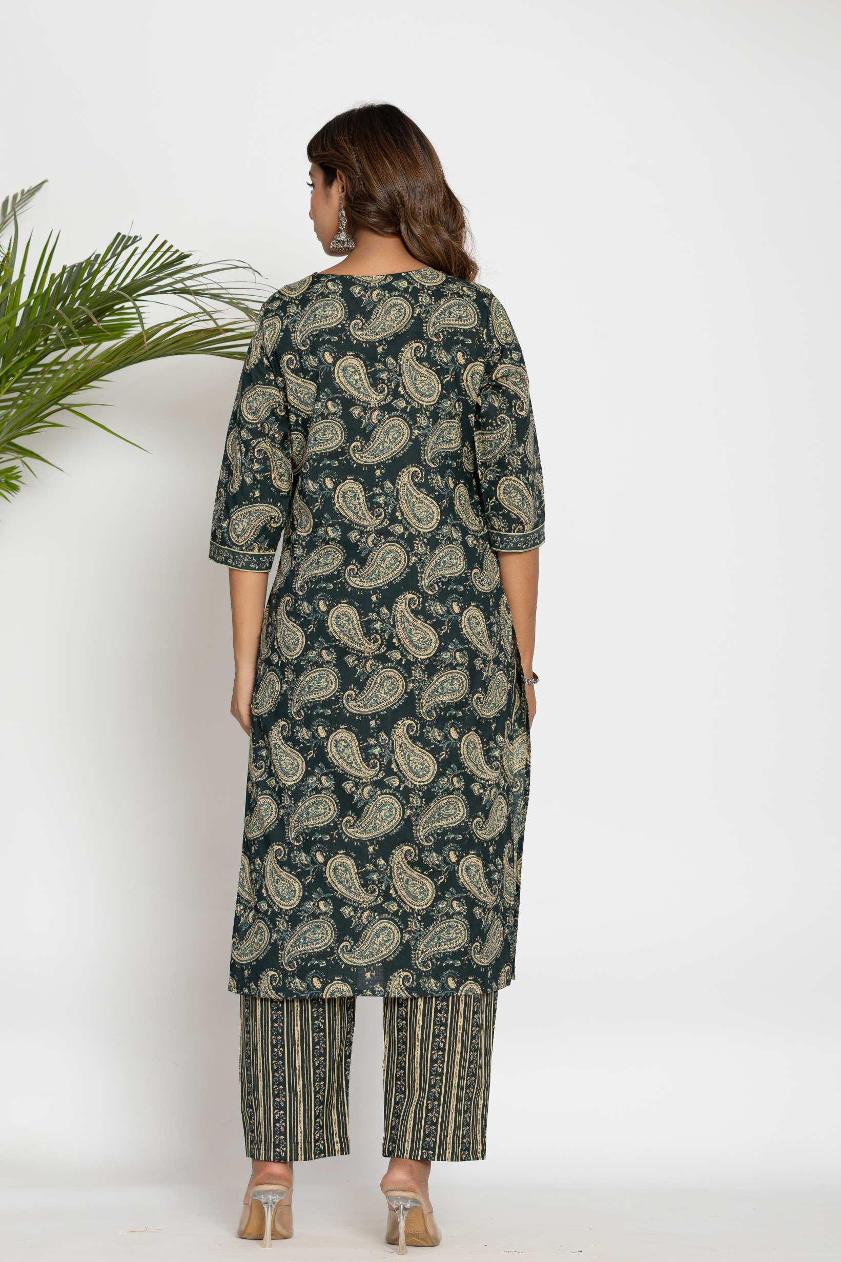Step into elegance with this beautifully designed cotton kurta set, featuring intricate paisley prints and a traditional ethnic look. Crafted for comfort and style, this set is a must-have for festive occasions, office wear, and casual outings.