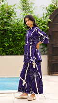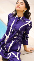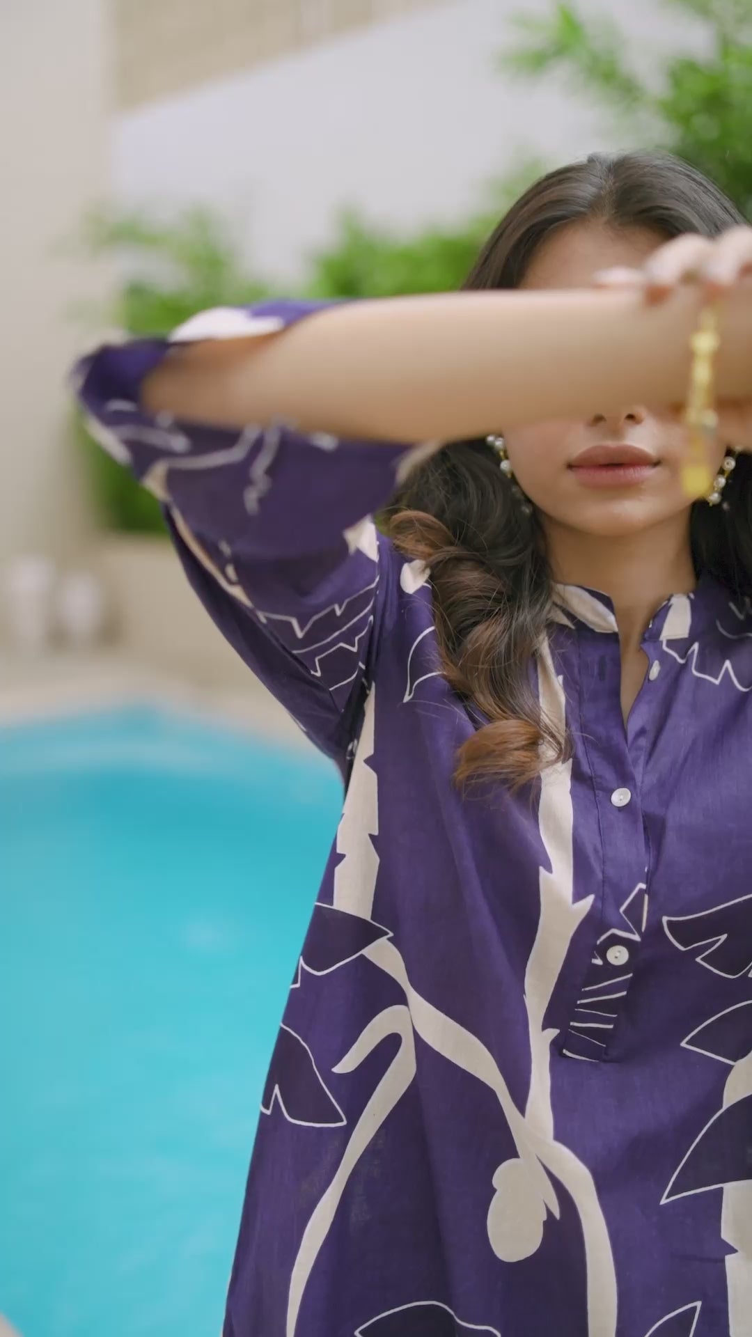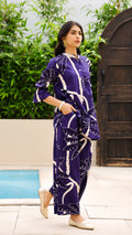 Make a bold yet breezy statement in our Midnight Palm Co-ord Set. Featuring ivory palm motifs on a rich purple base, this look blends tropical charm with effortless comfort.