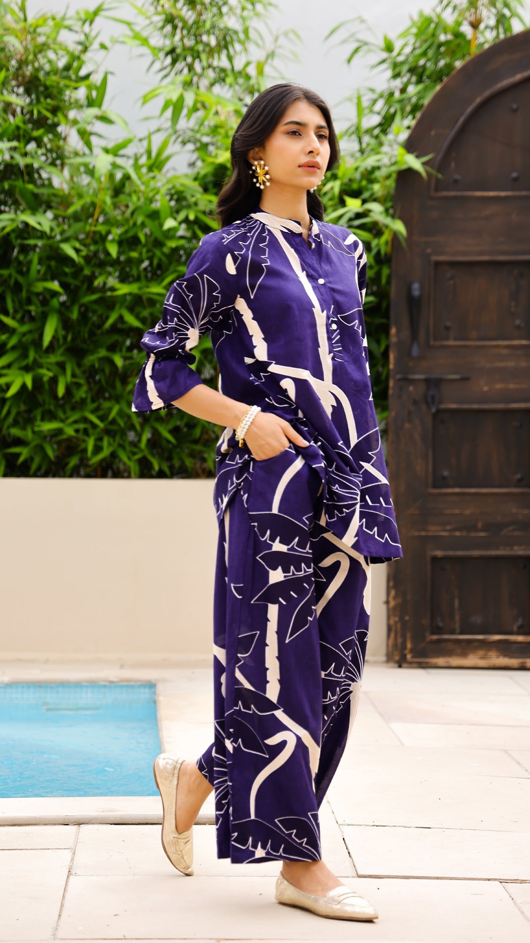 Midnight Palm Co-ord Set – Tropical Purple Cotton Coord