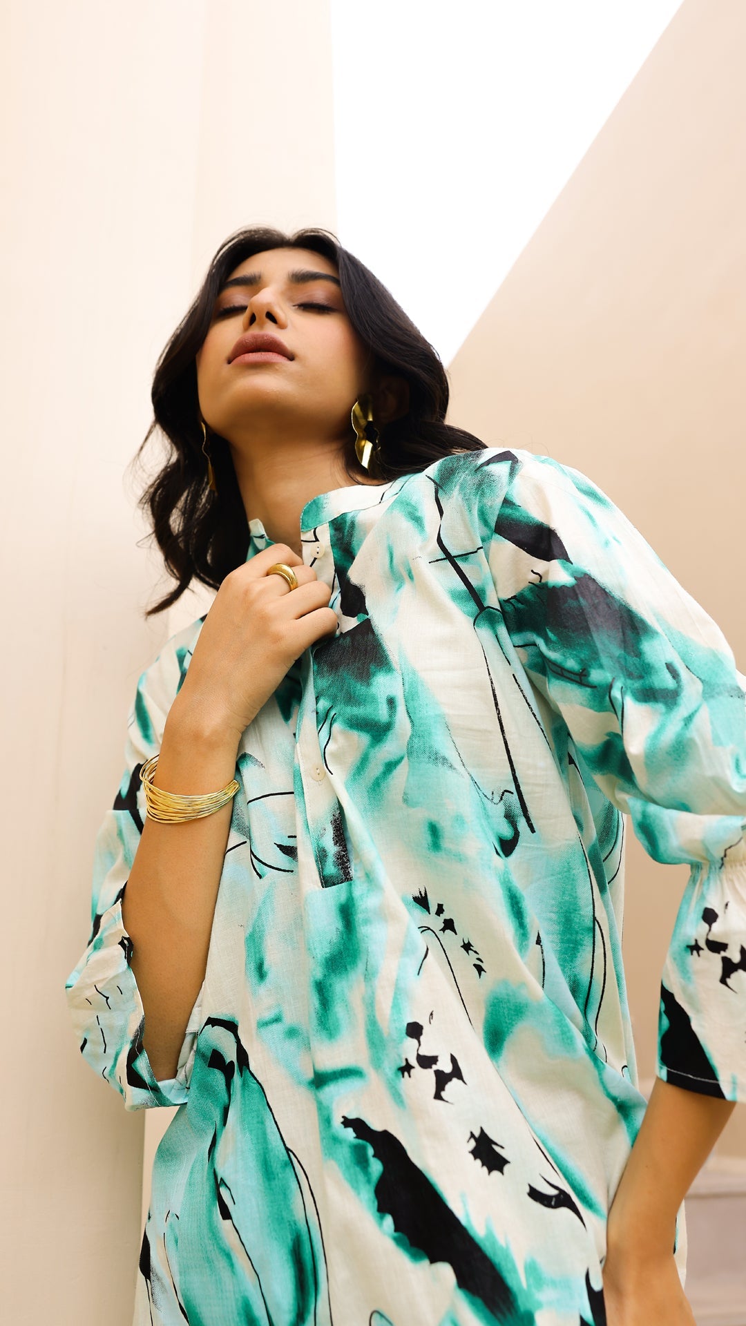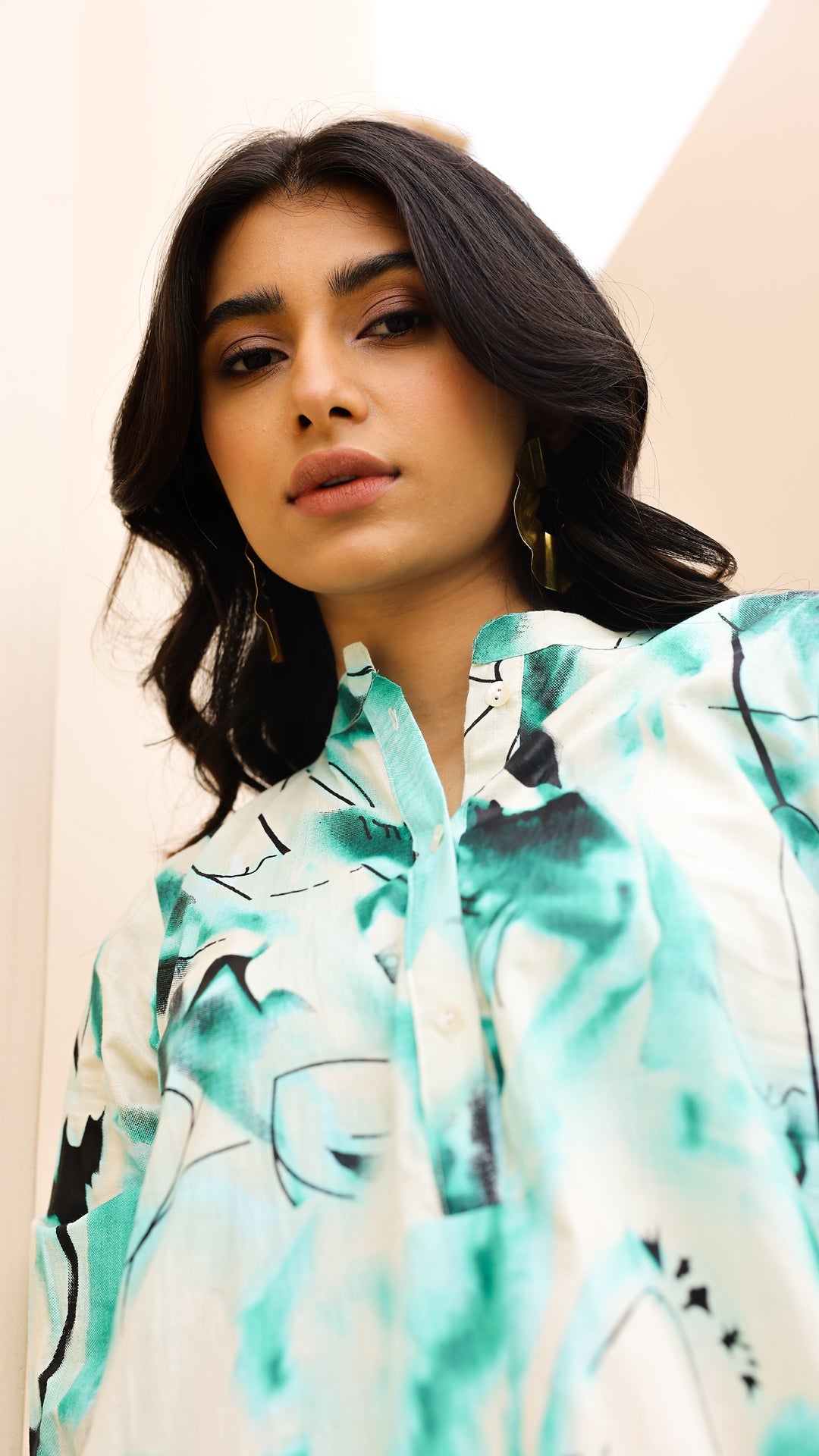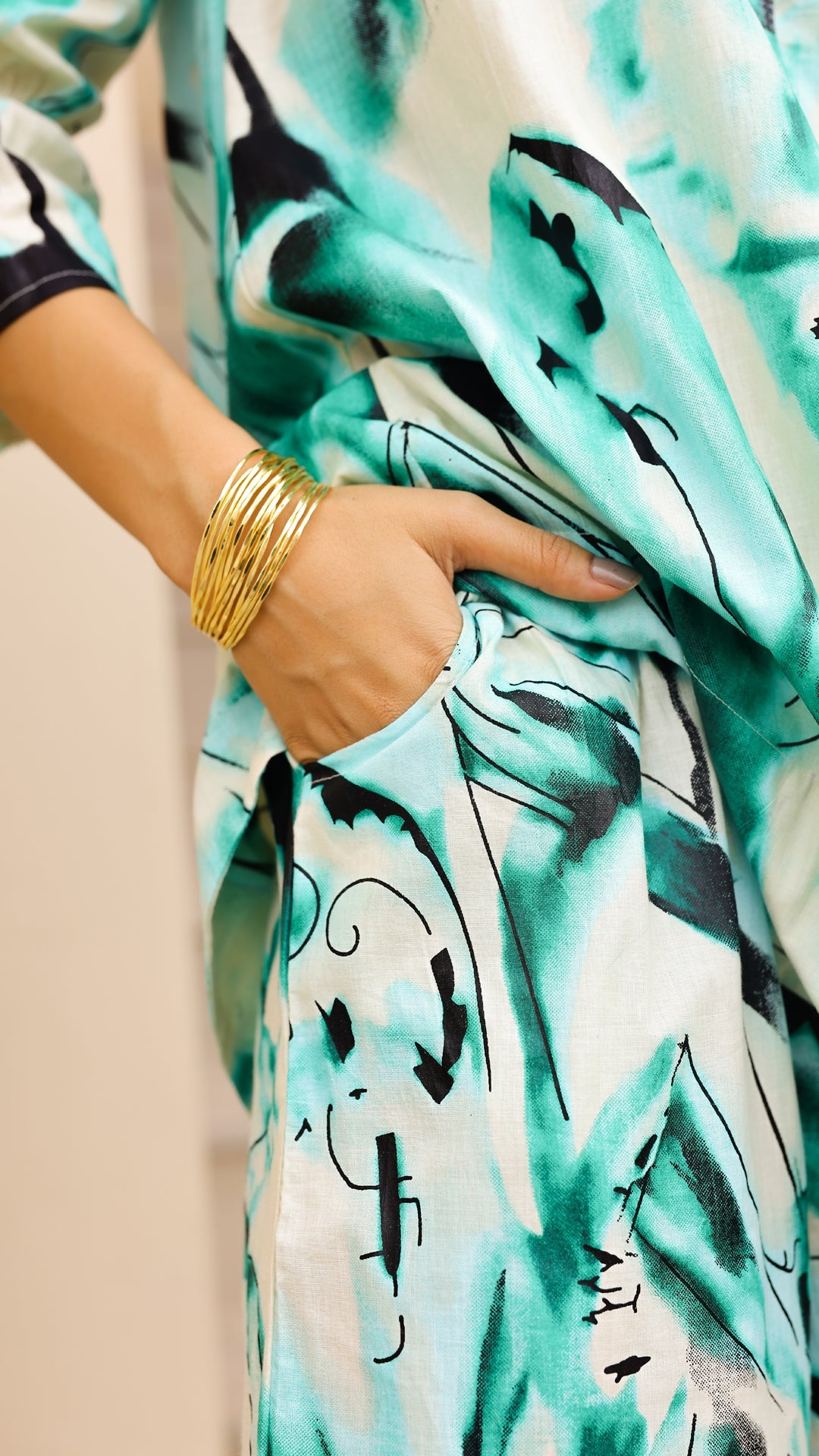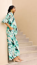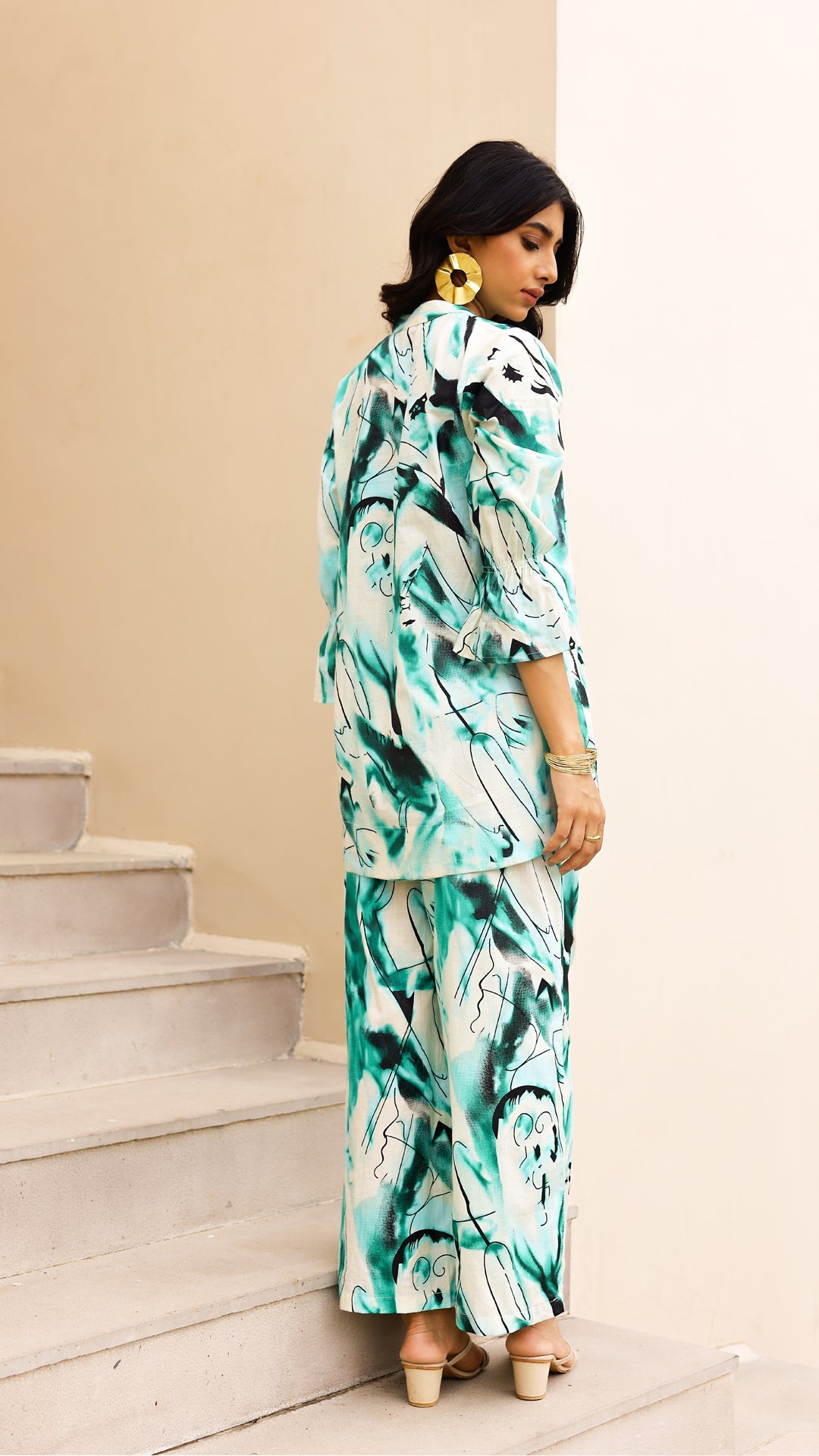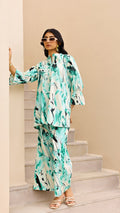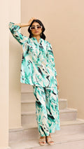 Stay cool and trendy in this aqua abstract co-ord set. With bold brushstroke-inspired patterns, a relaxed-fit kurta, and wide-leg matching pants, this set is designed for effortless style and comfort. Ideal for daywear, travel, or resort looks.