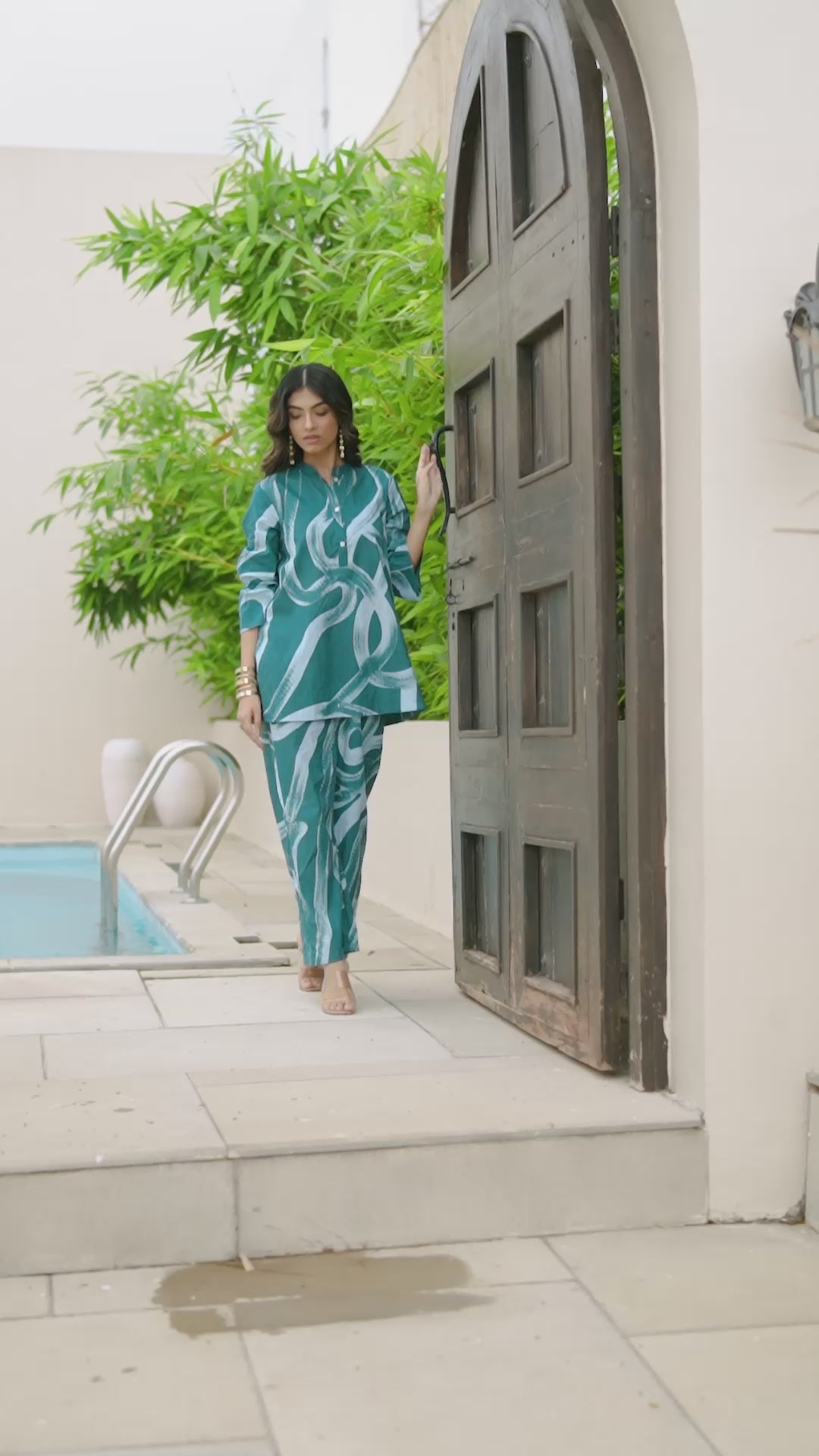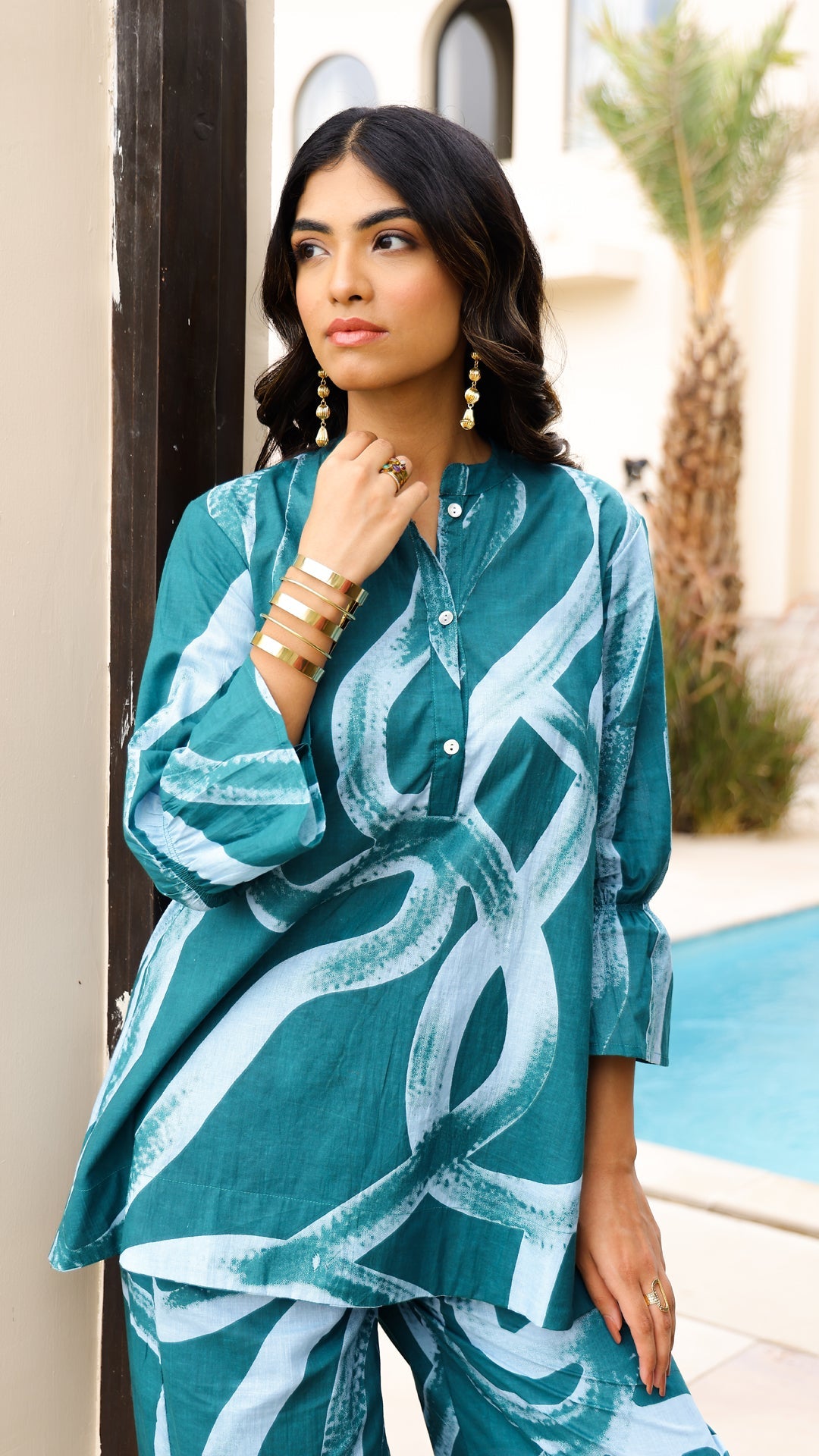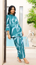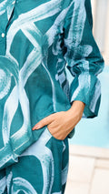 Turn heads in our Teal Tide co-ord set, designed with abstract water-inspired prints. Made in breathable cotton, it offers a breezy fit that keeps you comfortable yet stylish all day long.