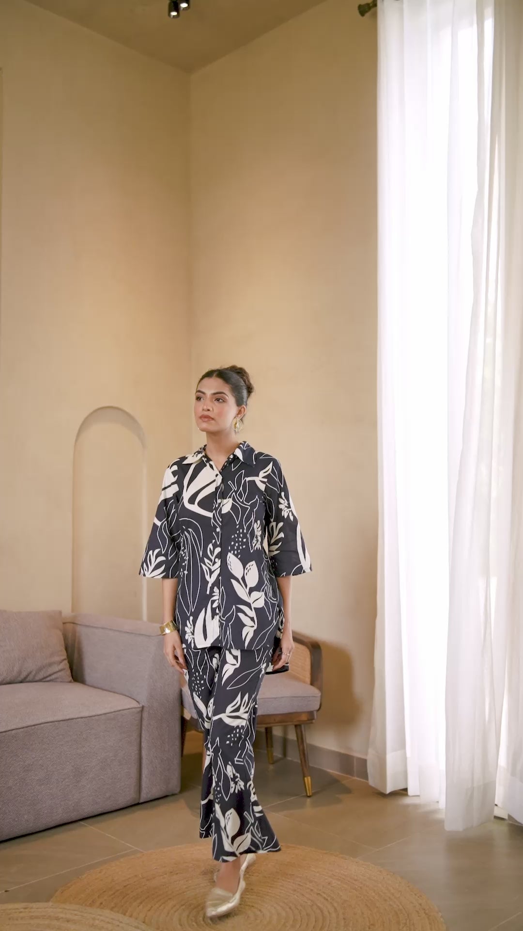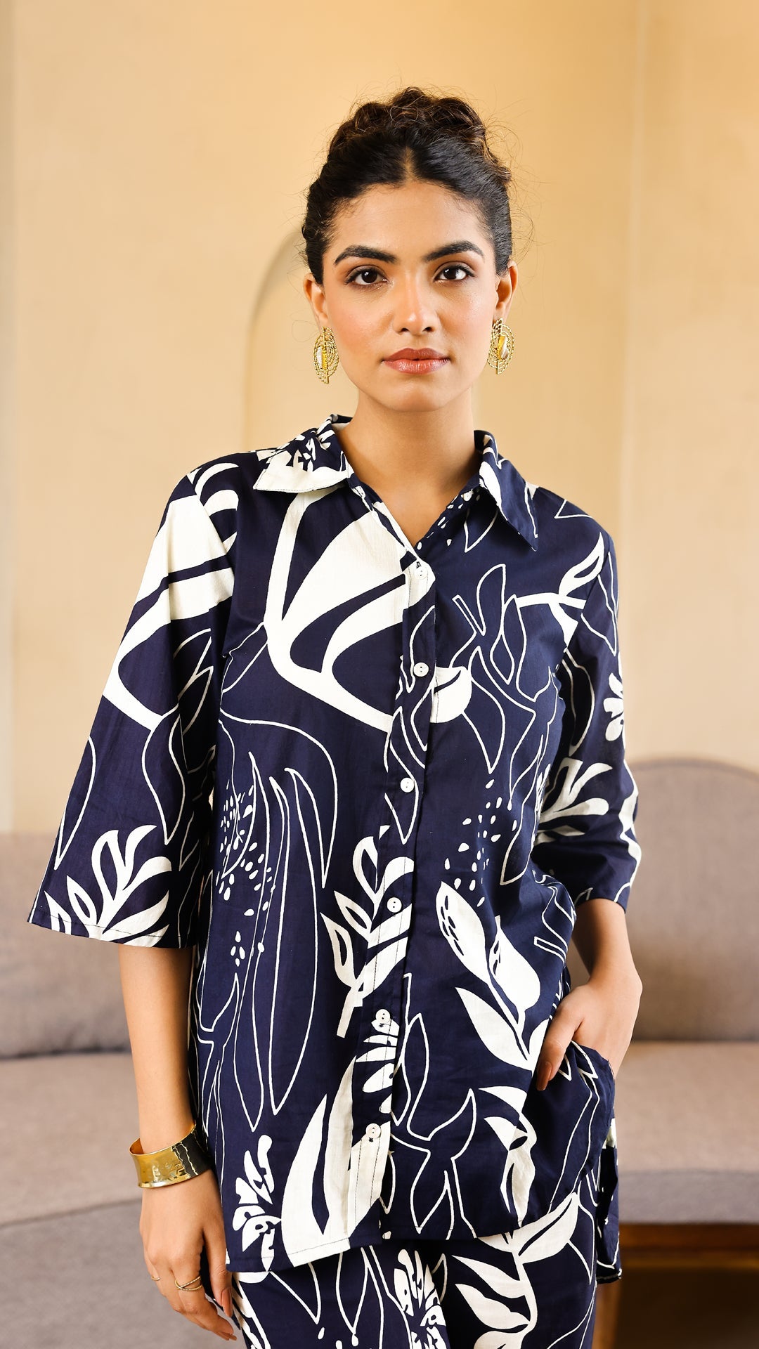This navy and white floral co-ord set brings effortless elegance with its minimal monochrome palette. Crafted from soft, breathable cotton, it's perfect for both lounging and stepping out in style.