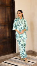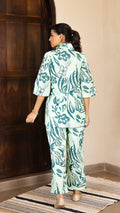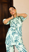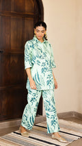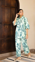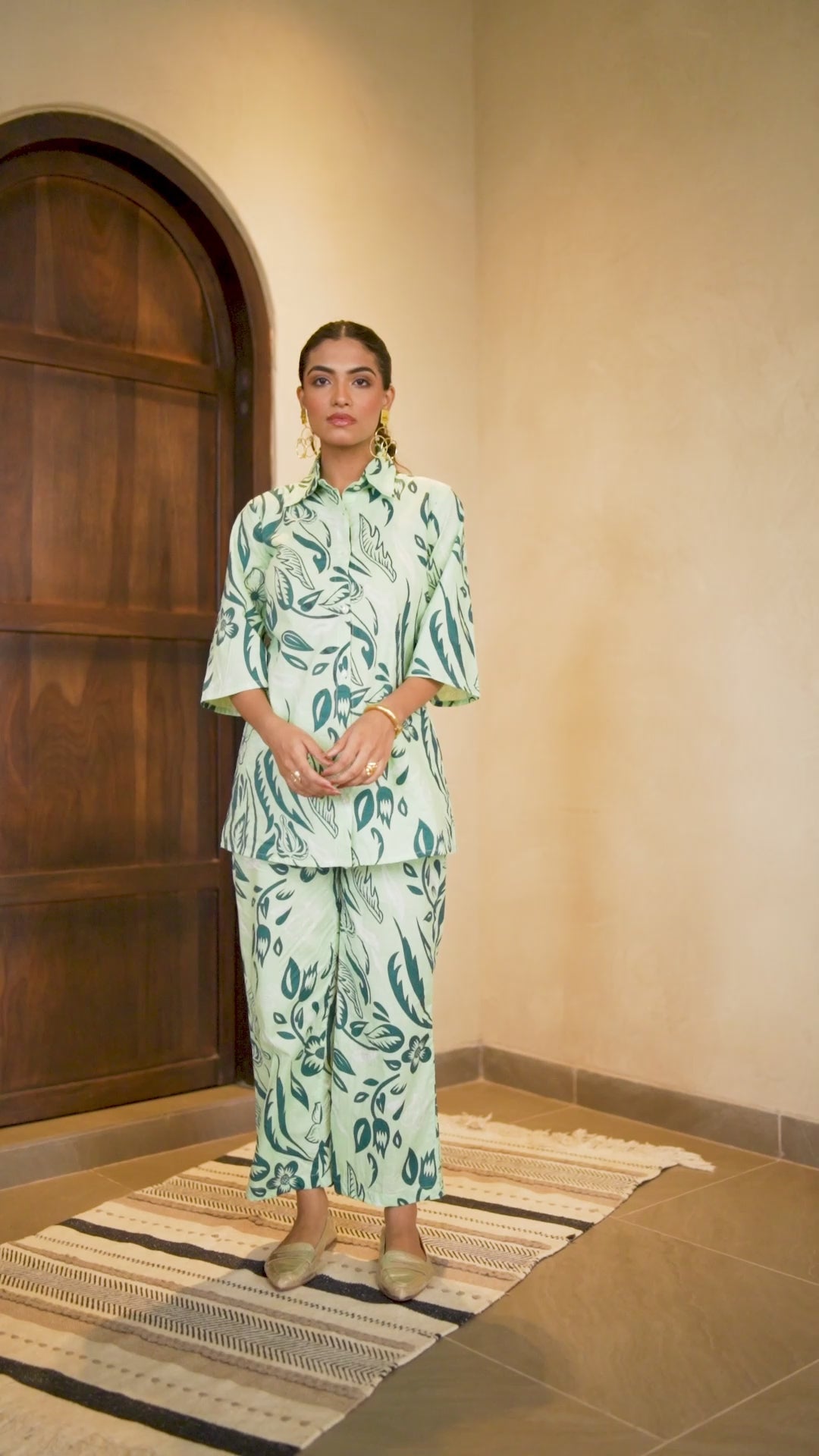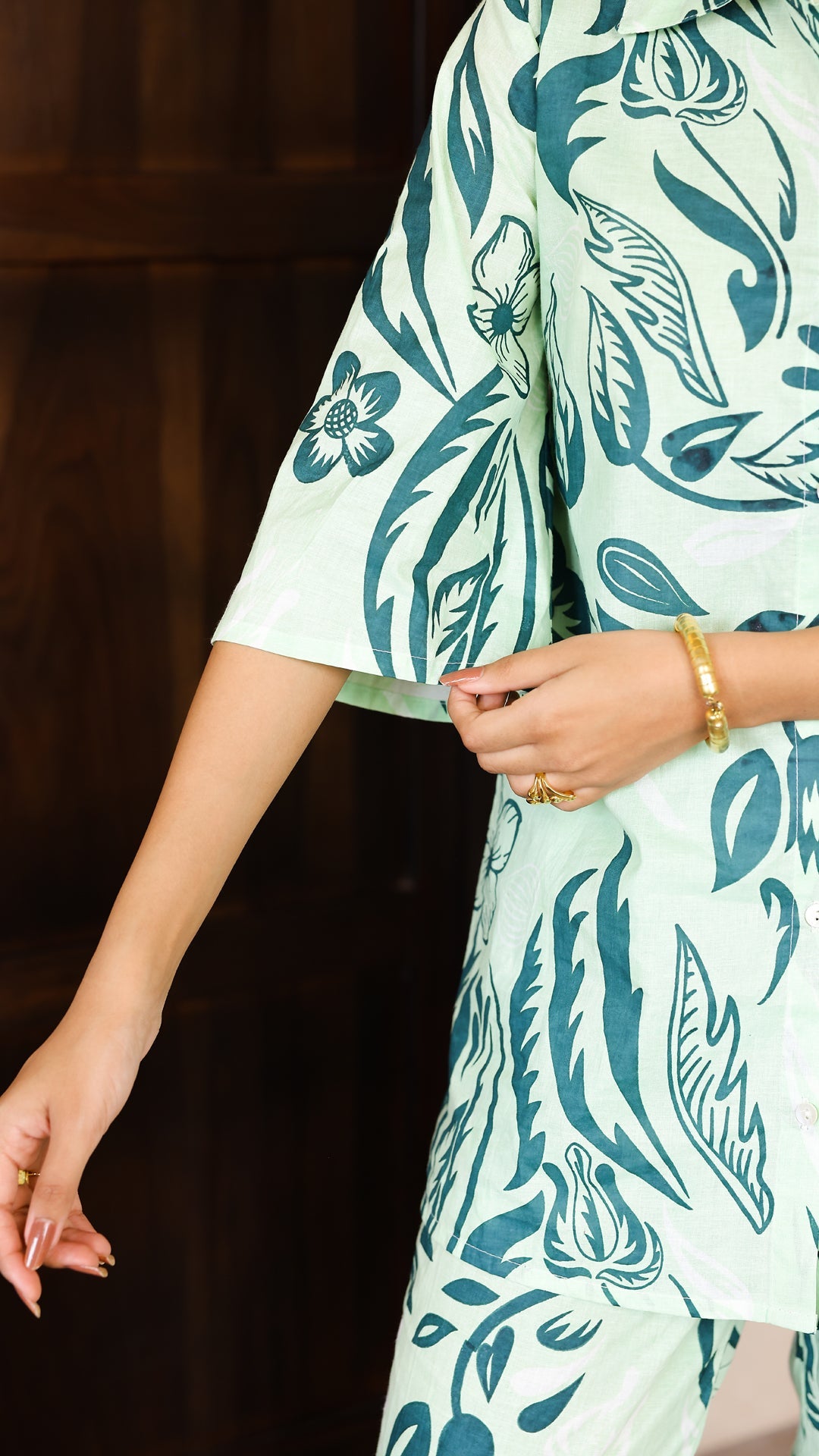 Fresh and effortless, this Mint Green Floral Co-Ord Set is crafted from breathable cotton. With a flowy silhouette, relaxed straight pants, and artistic floral prints, it's perfect for summer brunches, holidays, or day-to-evening styling.