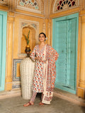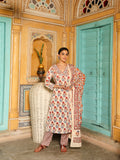 Off-White & Red Block Print Cotton Kurta Set with Dupatta Export to Sheets