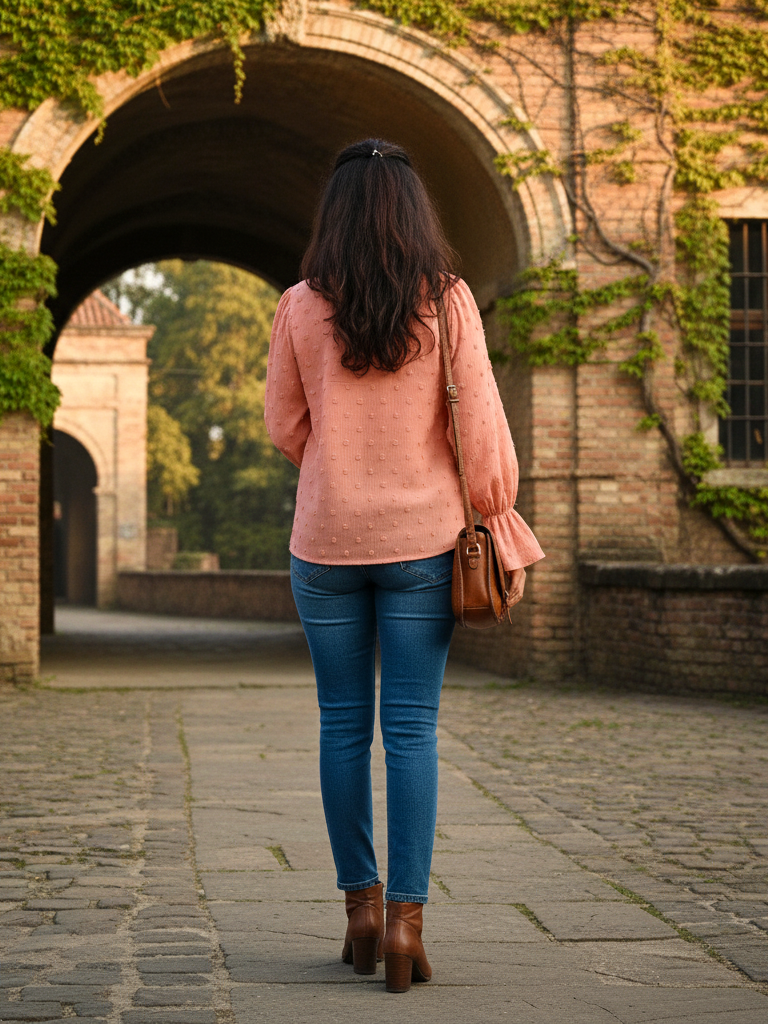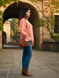 Peach Swiss Dot Chiffon Blouse with Pearl Collar Top