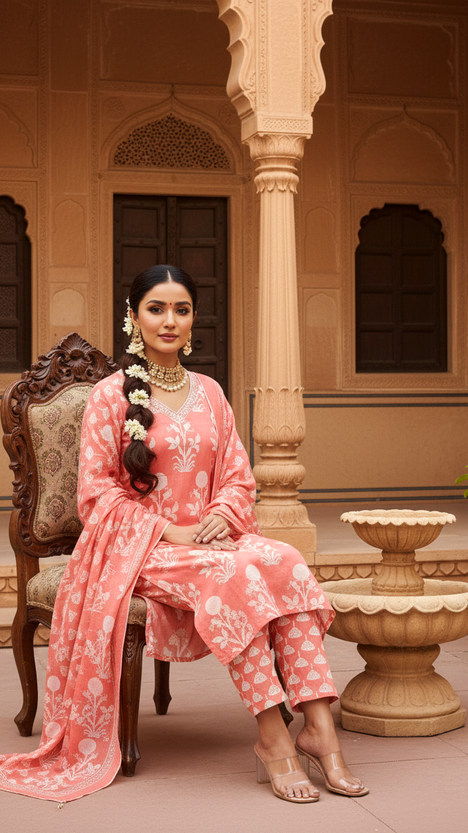 Elevate your everyday elegance with our Cotton Kurta Set with Dupatta, designed to bring together comfort and charm in one beautiful ensemble. Crafted from premium breathable cotton, this set features a stylishly tailored kurta paired with matching bottoms and a soft, lightweight dupatta that completes the look with grace.
