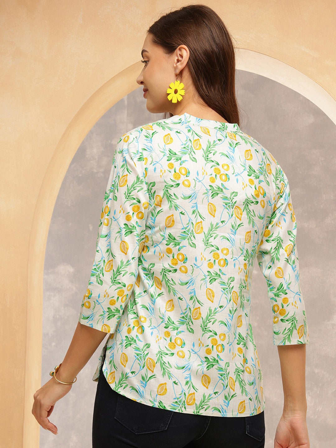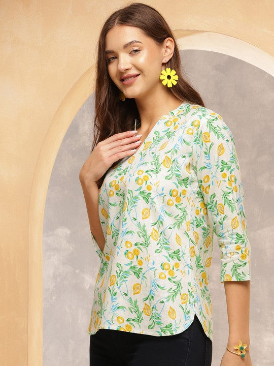 Lemon Bliss Cotton Tunic Top – White & Yellow