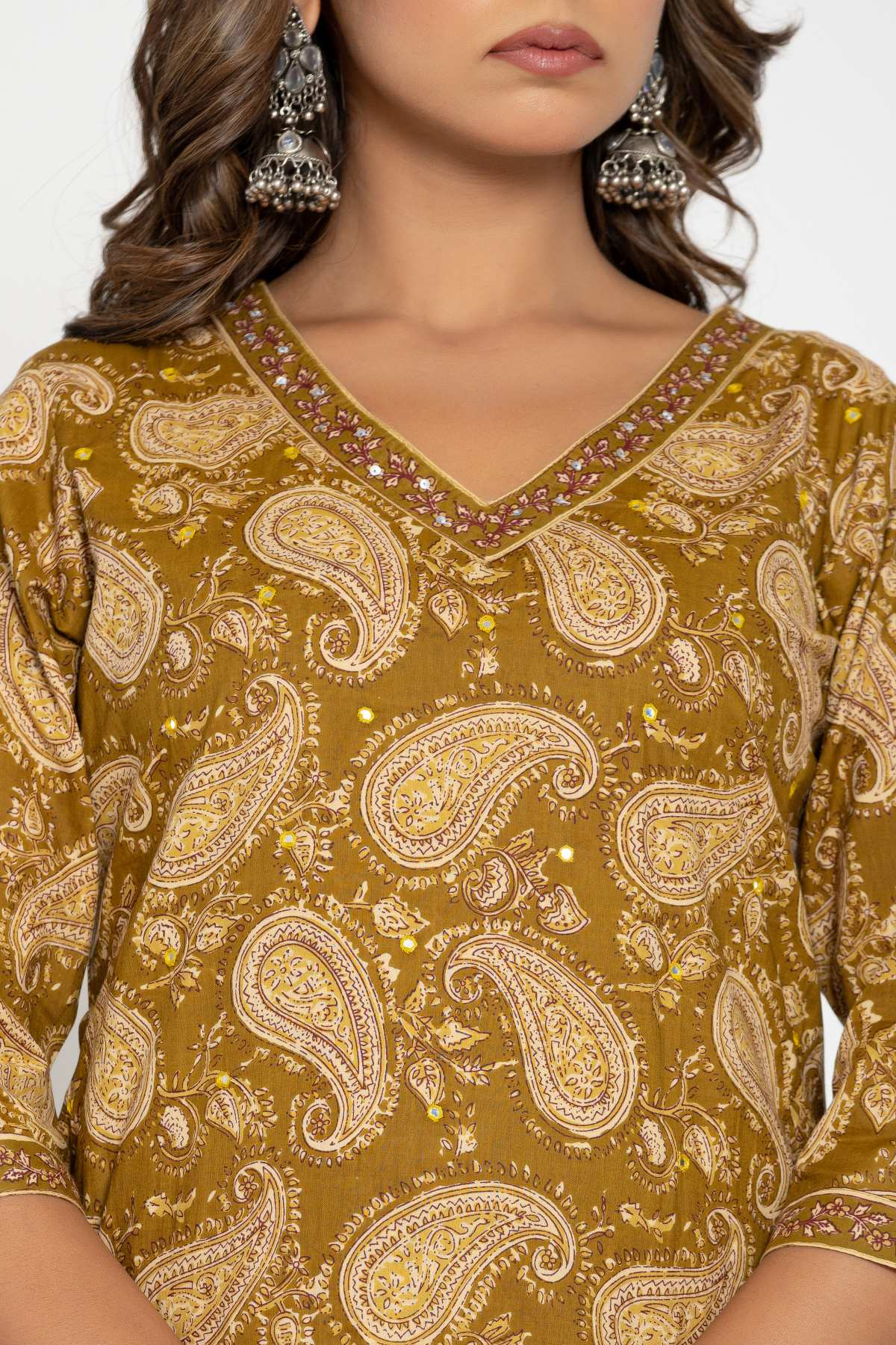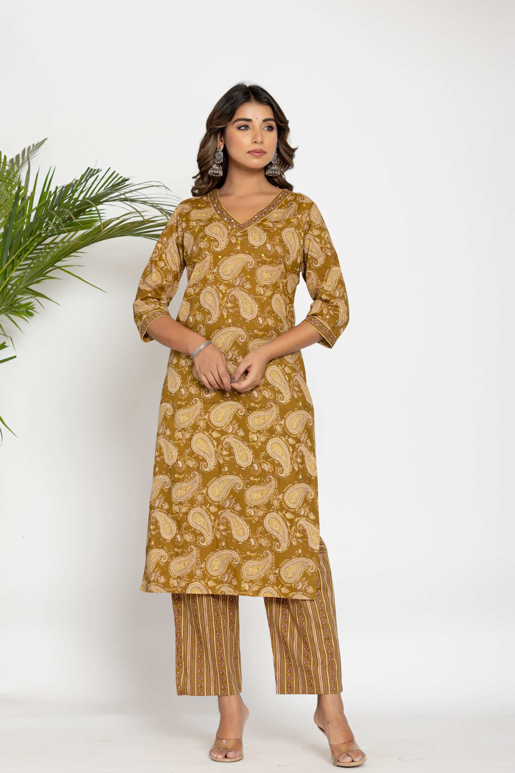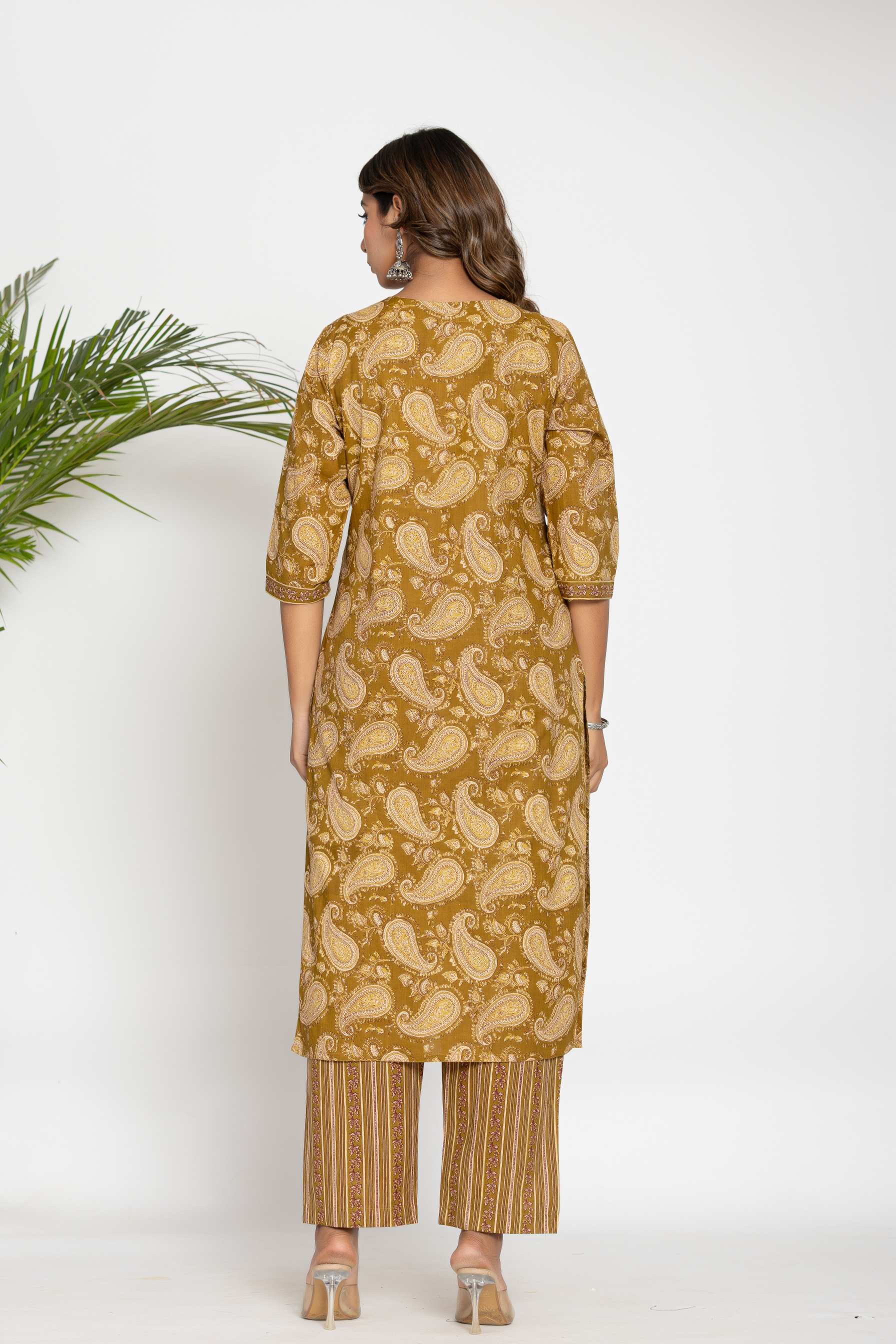 Embrace timeless ethnic fashion with this stunning printed kurta set. Made with premium-quality cotton, this outfit combines comfort with style, making it an ideal choice for any occasion.